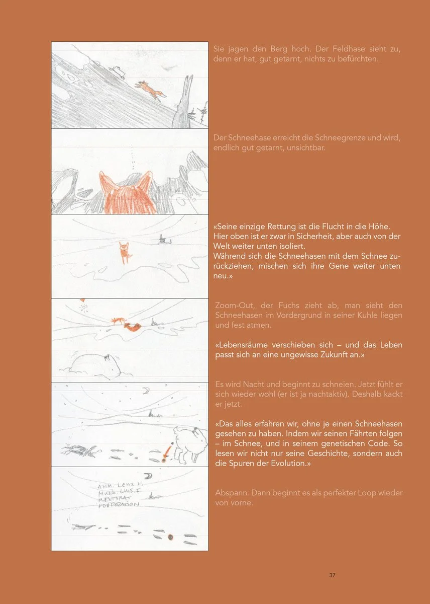 Der Animationsfilm macht diese Forschung sichtbar. Er begleitet einen Schneehasen durch ein Jahr, zeigt seinen Tarnungsverlust im schneefreien Winter und die Bedrohung durch einen neuen Konkurrenten, der ihm Nahrung und sogar genetisches Erbe streitig macht.